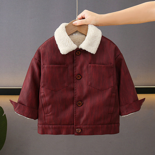 نفذ المنتج(كوفي ) طقم ولادي ٤ قطع قمصلة جلد مبطن